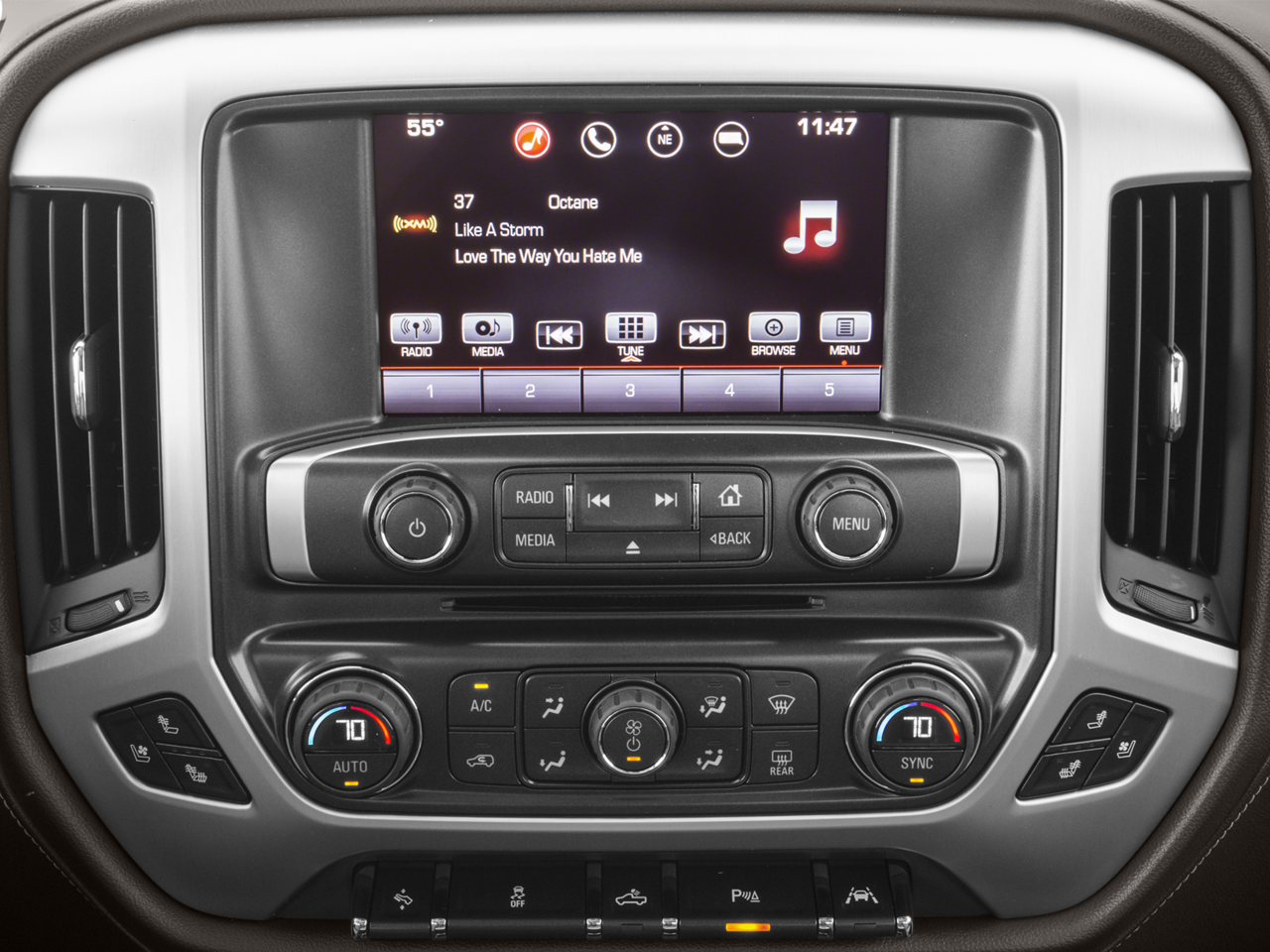 2018 GMC Sierra 1500 SLT Red Quartz Tintcoat 4WD 6-Speed Automatic Electronic with Overdrive EcoTec3 5.3L V8 6-Speed Automatic Electronic with Overdrive, 4WD, Jet Black Leather, 110-Volt AC Power Outlet, 150 Amp Alternator, 1st & 2nd Row Color-Keyed Carpeted Floor Mats, 2-Speed Active Electronic AutoTrac Transfer Case, 20 x 9 Polished Aluminum Wheels, 4.2 Diagonal Color Display Driver Info Center, 6-Speaker Audio System, 6 Rectangular Chromed Tubular Assist Steps, Auto-Dimming Inside Rear-View Mirror, Auxiliary External Transmission Oil Cooler, Bose Speaker System, Chrome Bodyside Moldings, Chrome Door Handles, Chrome Mirror Caps, Color-Keyed Carpeting, Deep-Tinted Glass, Driver & Front Passenger Illuminated Vanity Mirrors, Dual-Zone Automatic Climate Control, Electric Rear-Window Defogger, Enhanced Driver Alert Package, EZ Lift & Lower Tailgate, Forward Collision Alert, Front Frame-Mounted Black Recovery Hooks, GMC 4G LTE, GMC Connected Access, HD Radio, Heated & Ventilated Front Bucket Seats, Heavy-Duty Rear Locking Differential, IntelliBeam Automatic High Beam On/Off Headlight, Lane Keep Assist, Leather Wrapped Heated Steering Wheel, Leather Wrapped Steering Wheel w/Cruise Controls, LED Cargo Box Lighting, LED Tailamps w/Signature, Low Speed Forward Automatic Braking, Manual Tilt/Telescoping Steering Column, OnStar & GMC Connected Services Capable, Overhead airbag, Power Adjustable Pedals, Power Folding & Adjustable Heated Outside Mirrors, Power Sliding Rear Window w/Defogger, Power Windows w/Driver Express Up & Down, Preferred Equipment Group 4SA, Radio: AM/FM/GMC Infotainment & Navigation, Rear 60/40 Folding Bench Seat (Folds Up), Rear Wheelhouse Liners, Remote Keyless Entry, Remote Locking Tailgate, Remote Vehicle Starter System, Single Slot CD/MP3 Player, SiriusXM Satellite Radio, SLT Preferred Package, SLT Premium Package, Steering Wheel Audio Controls, Theft Deterrent System (Unauthorized Entry), Thin Profile LED Fog Lamps, Trailering Equipment, Ultrasonic Front & Rear Park Assist, Universal Home Remote.